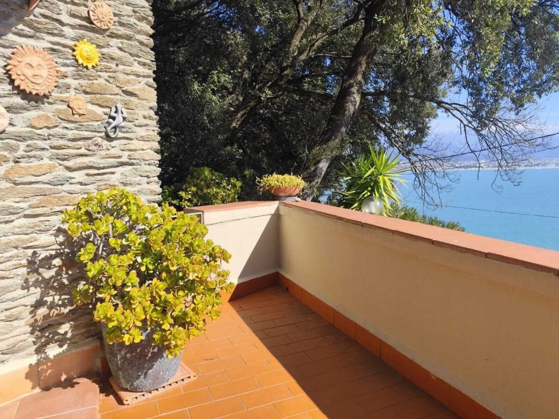 A Picco sul Mare di Punta Bianca (La Spezia), nel cuore della macchia mediterranea del parco naturale di Montemarcello,  con splendida vista mare e Alpi Apuane, in contesto condominiale signorile con piscina, Splendido Appartamento  di 62 mq circa con Favolosa Terrazza Vista Mare. Il Luminosissimo appartamento con accesso privato, su un unico comodo livello,e’  composto da ingresso in luminoso soggiorno con divano letto e uscita sulla Terrazza Vista mare, zona cottura, camera matrimoniale con Terrazza Vista Mare,Grande  bagno e grande terrazza panoramica Vista Mare. Completano la proprietà un ampio box auto privato di circa 30 mq, giardino e porzione di terreno con macchia mediterranea, adiacente l’immobile. Ottime rifiniture, aria condizionata, predisposizione per pannelli solari termici. Lastrico solare soprastante rifatto recentemente. Ottimo Investimento immobiliare ideale per essere vissuto e goduto in ogni periodo dell’ anno.